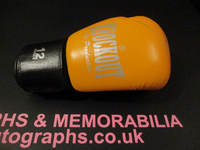 In Good Condition, Dark Yellow & Black 12 Ounce Right Glove. Signed In-Person At Our Event On 12th September 2009, By Frank Maloney In Black Felt & James McSweeney In Silver Felt