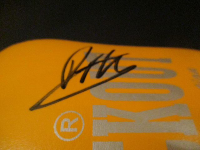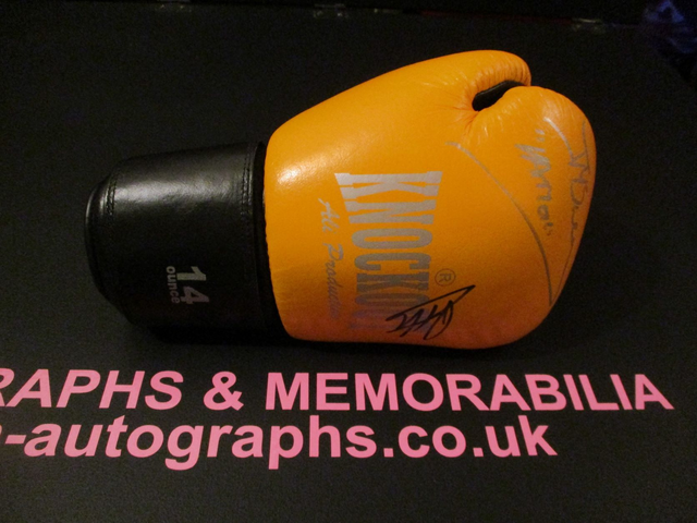 In Good Condition, Dark Yellow & Black 14 Ounce Right Glove. Signed In-Person At Our Event On 12th September 2009, Signed By Frank Maloney In Black Felt, James McSweeney In Silver Felt, Phil Gill In Black Felt