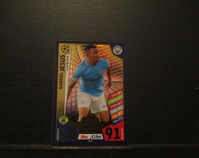 Gabriel Jesus - UEFA Champions League Match Attax 2017/18 Gold Limited Edition Original Trading Card #LE4G