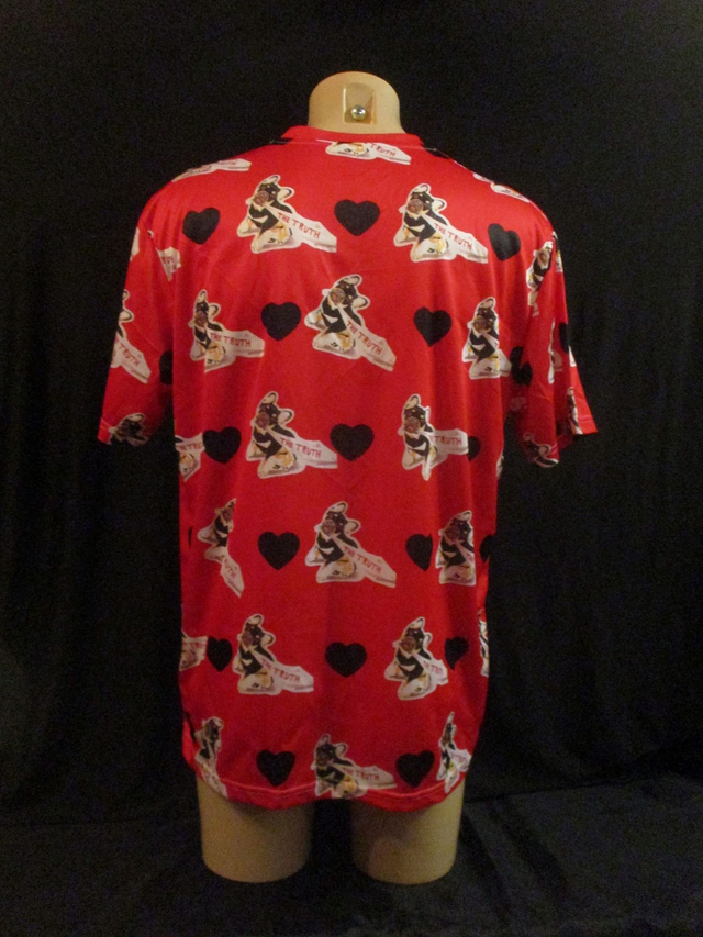 James 'The Truth' Connelly Dog DOUBLE SIDED Picture T-Shirt ADULT 100% Polyester Crew Neck RED & BLACK HEART (X-Large) Top