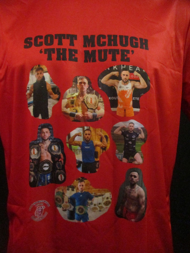 Scott McHugh Champion Bare Knuckle Boxer Picture T-Shirt (Black Bubble Logo) ADULT 100% Polyester Crew Neck RED (Medium) Top